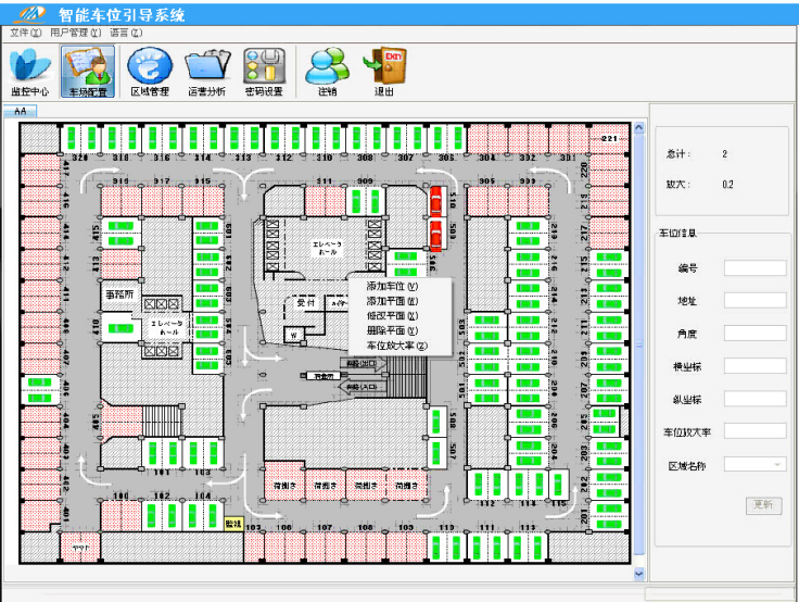 在系統(tǒng)軟件中,可以直觀地顯示整個(gè)停車場(chǎng)的使用情況,軟件中可以加載整個(gè)停車場(chǎng)的平面圖,實(shí)時(shí)、動(dòng)態(tài)地顯示出停車場(chǎng)內(nèi)每個(gè)車位的占用、空閑信息。